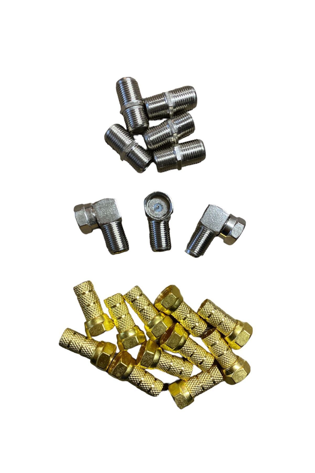 1- SARI-GOLD F KONNEKTÖR: RG6-U4, Standart 18 MM Genişlikte, SuGeçirmez, Özel Üretim Nikel Kaplama,Kaliteli, CE Belgelidir. ; *RG 6 ya kadar olan televizyon veyaKamera kayıt cihazlarının Televizyon anten kablolarının bağlanması içinkullanılan baş kısmı cıvata gibi kendinden hareket eden konnektör başlığıdır. ; *F Konnektör TV prizlerinin TelevizyonUydu kablosu ile bağlantısı içinde bu parça kullanılmaktadır. ; *Kablonun ucunu sabit bir cihaza(örneğin televizyon veya uydu alıcısı) bağlamak için kullanılır. ; 2-L KONNEKTÖR: Anten kablosunun çıkışını aşağı doğru vererek rahatkullanım sağlar. ; Yine, Kablolarının baş kısmı cıvata gibi hareket eder. ; Bina içi CATV-CCTV, TV ve Uydu Sistemlerindebağlantı kablosu olarak kullanılır. ; 3-F ARA KONNEKTÖR: Anten kablosunubirleştirmeye, ek yapmaya yarar. ; Dişi – Dişi Kablo birleştiricidir.;
