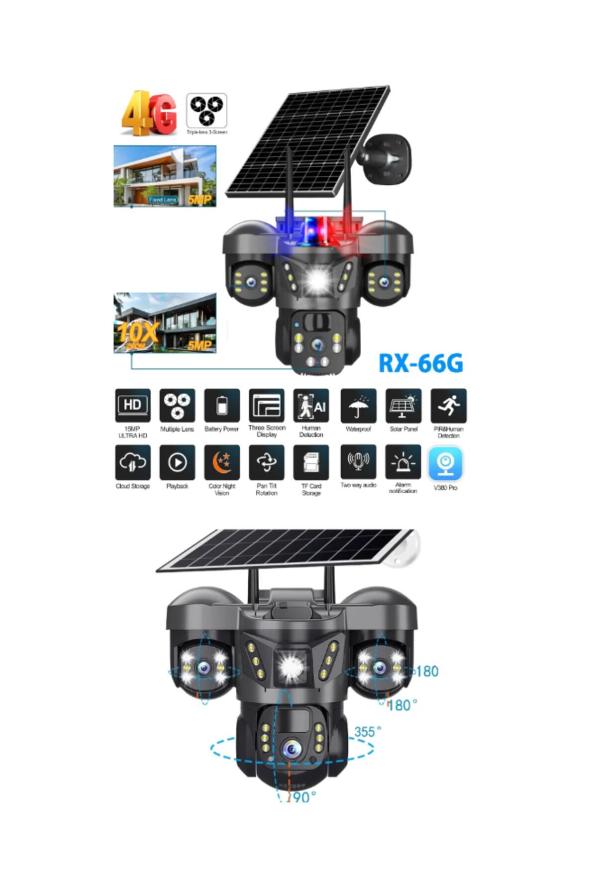 Temel Özellikler Model: V380Pro 4G Dual Lens Kamera Bağlantı:4G SIM Kart Destekli Uygulama:V380 Pro (Türkçe, Android/iOS) Kamera Özellikleri Lens Çözünürlüğü: 9MP Çift Lens (3MP + 3MP+ 3MP) Lens Açısı:4mm Kayıt Çözünürlüğü:Full HD (1920x1080) 1080p Gece Görüş:Led (Beyaz LED + IR LED) PIR Sensör:Var Yapay Zeka Özellikleri Hareket Algılama İnsan Algılama Otomatik İnsan Çerçeveleme Kişi Hareketini Gerçek Zamanlı Takip Özel Alan Belirleme Ayarlanabilir Hareket Algılama Zamanı Hareket Anında Alarm Flaşı Depolama Hafıza Kartı Desteği:Max 128GB MicroSD Ortalama Kayıt Süresi:20-30 Gün Döngüsel Kayıt:Aktif (Hafıza dolunca eski kayıtların üzerine yazma) Bağlantı ve Kontrol Uzaktan İzleme ve Kontrol Canlı Video Akışı Sesli Görüşme Özelliği Kamera Yönlendirme Güç Sistemi Solar Şarj Sistemli Dahili Batarya Type-C Girişli Harici Şarj Desteği 5V Güç Beslemesi Diğer Özellikler Ses:Dahili Hoparlör ve Mikrofon Dış Mekan Uyumluluğu:IP66 Standartları Dil Desteği:Türkçe (Çoklu Dil Seçeneği) Uyarılar Sim kart takılırken pin kodu kapalı olmalıdır İlk kullanımda bataryayı tam şarj ediniz Kutu içerisinde hafıza kartı yoktur.; Hafıza kartı seçiminde video kayıt uyumluluğuna dikkat ediniz.; Sürekli video kaydı yapacağı için hafıza kartı satın alırken U3 V30 standarlarında olmasına dikkat edin.;