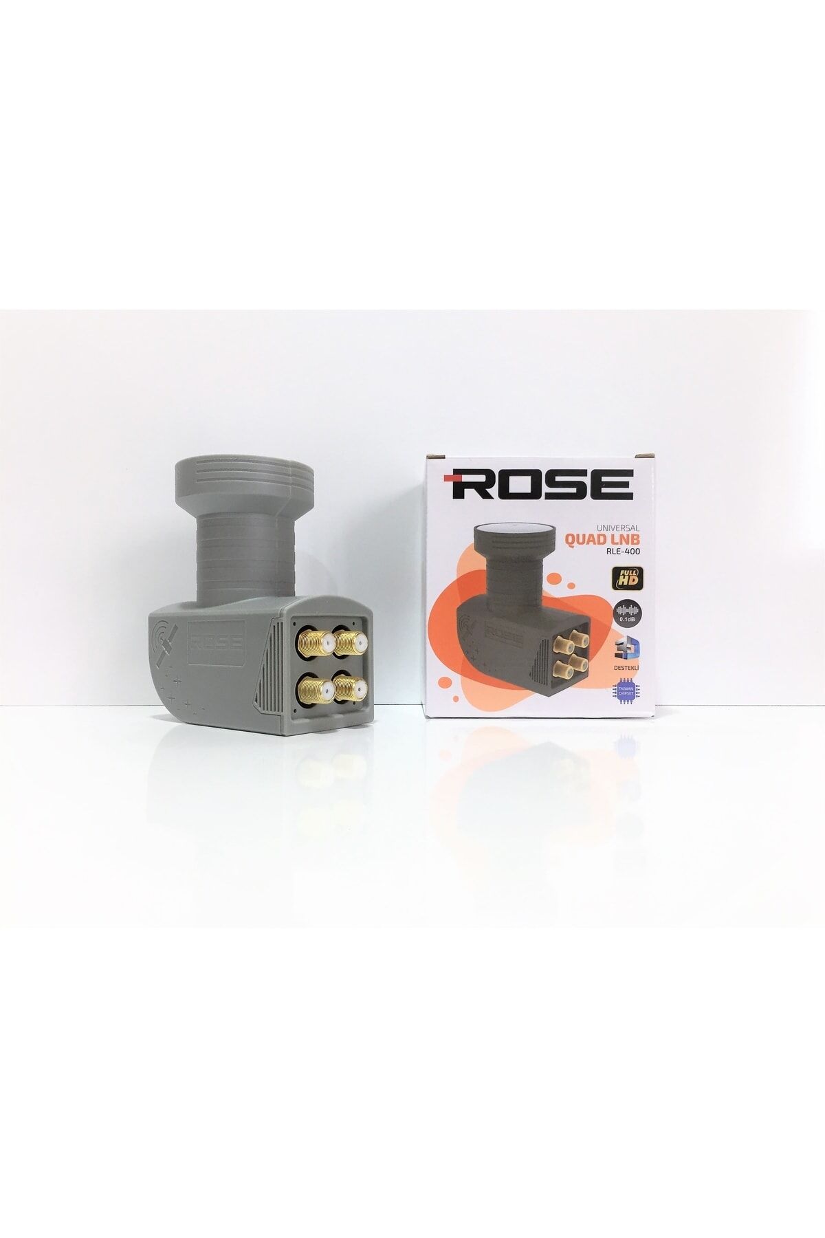 ROSE Dörtlü 4'lü Universal Quad LNB 4K Ultra HD 3D Elembi Yağmur Korumalı Taiwan Chipset Gold Connector Model: RLE-400; Gri Plastik Kasa; Maksimum Sinyal Gücü; Yağmur Geçirmez Sürgülü Kapak; Süper Kalite - Yüksek Performans; Düşük Gürültü Oranı - Yüksek Kazanç; 4K Ultra HD - FullHD - 3D Yayın Desteği; Teknik Özellikler; Input Frequency : 10.70GHz~12.75GHz; Output Frequency : 950MHz-2150MHz; Local Oscillator Frequency : 9.75GHz/10.60GHz; Noise Figure : 0.1dB; Conversion Gain:55dB; Çok çıkışlı LNB , farklı mekanlarda farklı kanalları izlemenize olanak sağlar. Yayınların birbirine karışmasını engelleyen özellikleri vardır;