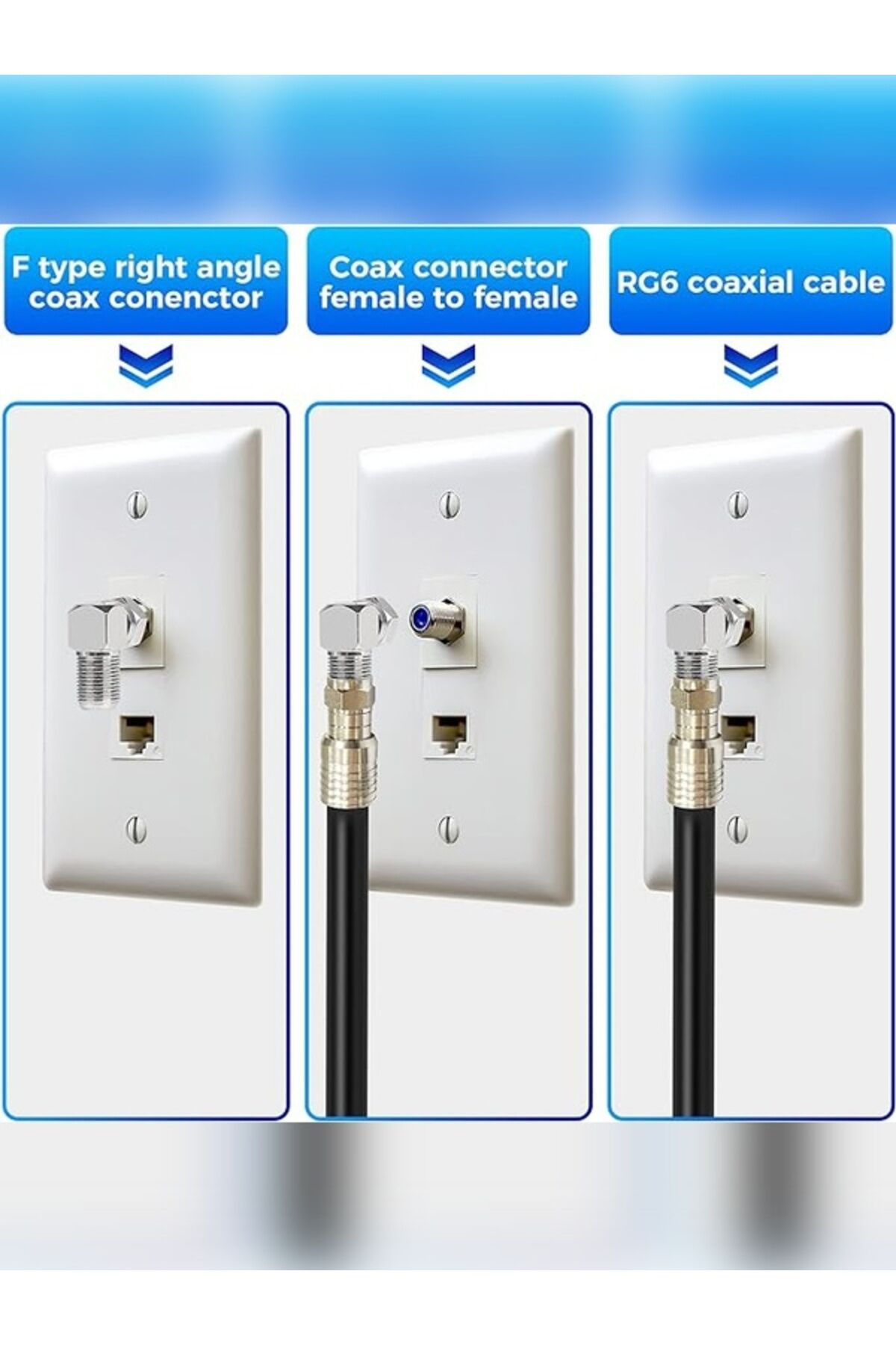 2 Adet ; L Tipi Konnektör Fiş, 90 Derece,Çevirmeli ; F Konnektör’den F Konnektöre L Adaptör. ; Anten kablosunun çıkışını aşağı doğruvererek rahat kullanım sağlar. ; Dar alanlarda rahatlıkla kullanabilirsiniz. ; Kablolarının baş kısmı cıvata gibihareket eder. ; Bina içi CATV-CCTV,TV ve Uydu Sistemlerinde bağlantı kablosu olarak kullanılır ;