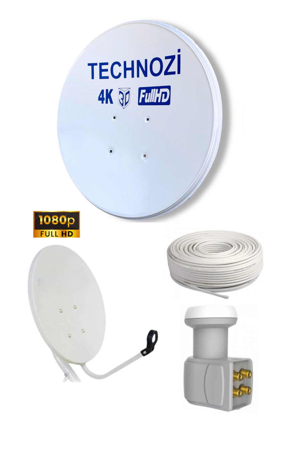 Technozi 70 cm Çanak Anten Full Set Dörtlü Lnb 50 Metre Kablo