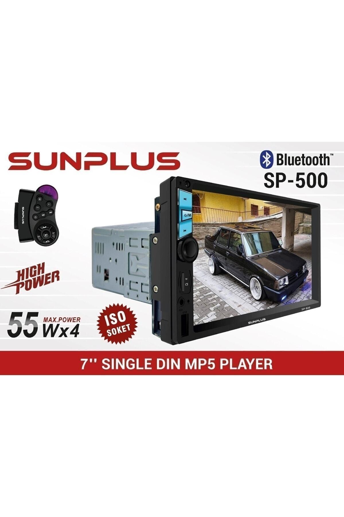 SUNNPLUS SP-500 7" MP5 ÇALAR 55W X 4 BLUETOOTH DOKUNMATİK EKRAN OTO TEYP MP5 / MP4 / RMVB / AVI / MOV / MKV ( VİDEO FORMATI) ; MP3 / WMA MÜZİK FORMAINI DESTEKLER ; USB-SD-MMC GİRİŞİ ( MAX: 32GB ) ; BMP / GIF / JPF / PNG VB RESİM FORMATLARINI DESTEKLER; FM RADIO STORE VE ÖNCEDEN AYARLANMIŞ 18 İSTASYON ; BLUETOOTH; EKRAN YANSITMA İŞLEVİ ; DİREKSİYON KONTROLÜNÜ DESTEKLER ; MÜKEMMEL SUBWOFER ÇKILI ; ARKA GÖRÜŞ KAMERASI ; GÜÇ ÇIKIŞI: 4X55 W; UZAKAN KUMANDA ;