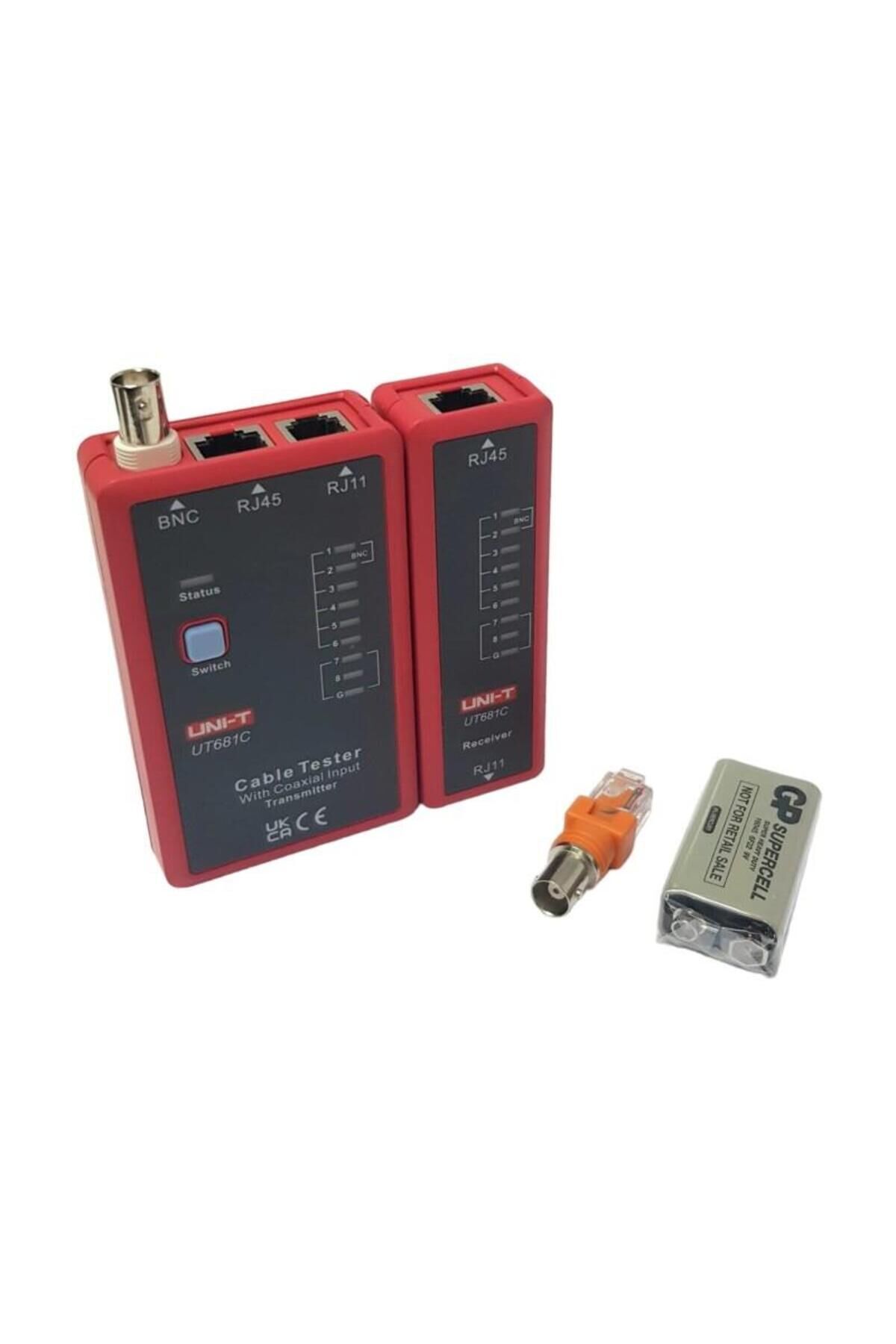 UNIT UT-681C Network CAT5-CAT6-CAT7 Kablo Test Cihazı Ethernet kablolarını ve telefon hatlarını test eder Ethernet kablosu için RJ45 arayüzü ve telefon hattı testi için RJ11 arayüzü ile donatılmıştır Ethernet kabloları: Korumalı / Korumasız test Görünür led göstergesi Devre kırılmalarını, kısa devreleri ve çapraz devreleri otomatik olarak kontrol edin Hızlı ve yavaş hız testi modları arasında geçiş yapabilir Tek anahtar operasyon Manuel / otomatik kapanma (10 dakikalık hareketsizlikten sonra) Düşük batarya göstergesi 9V pil ile sağlanan güç Konektörler : RJ45 / RJ11 / BNC Hızlı kontrol modu Düşük test modu Kısa devre, çapraz bağlantı, açık devre Ethernet kablosu: korumalı / korumasız test Manuel kapatma işlevi Otomatik kapanma fonksiyonu Tek anahtar operasyon Düşük voltaj algılama Güç kaynağı 9 V pil (Pakete dahil değildir.; )